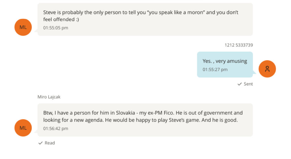 Krátko po stretnutí s Epsteinom a Bannonom poslal exminister Lajčák Epsteinovi správu, v ktorej mu odporučil Roberta Fica ako vhodného človeka pre Bannona. Prvého júla 2018 mu napísal: „Mimochodom, mám pre neho (Stevea Bannona, pozn.) človeka na Slovensku – môjho bývalého premiéra Fica. Je mimo vlády a hľadá si novú agendu. Rád by hral Steveovu hru. A je dobrý,“ napísal Lajčák Epsteinovi (pdf, str. 6).